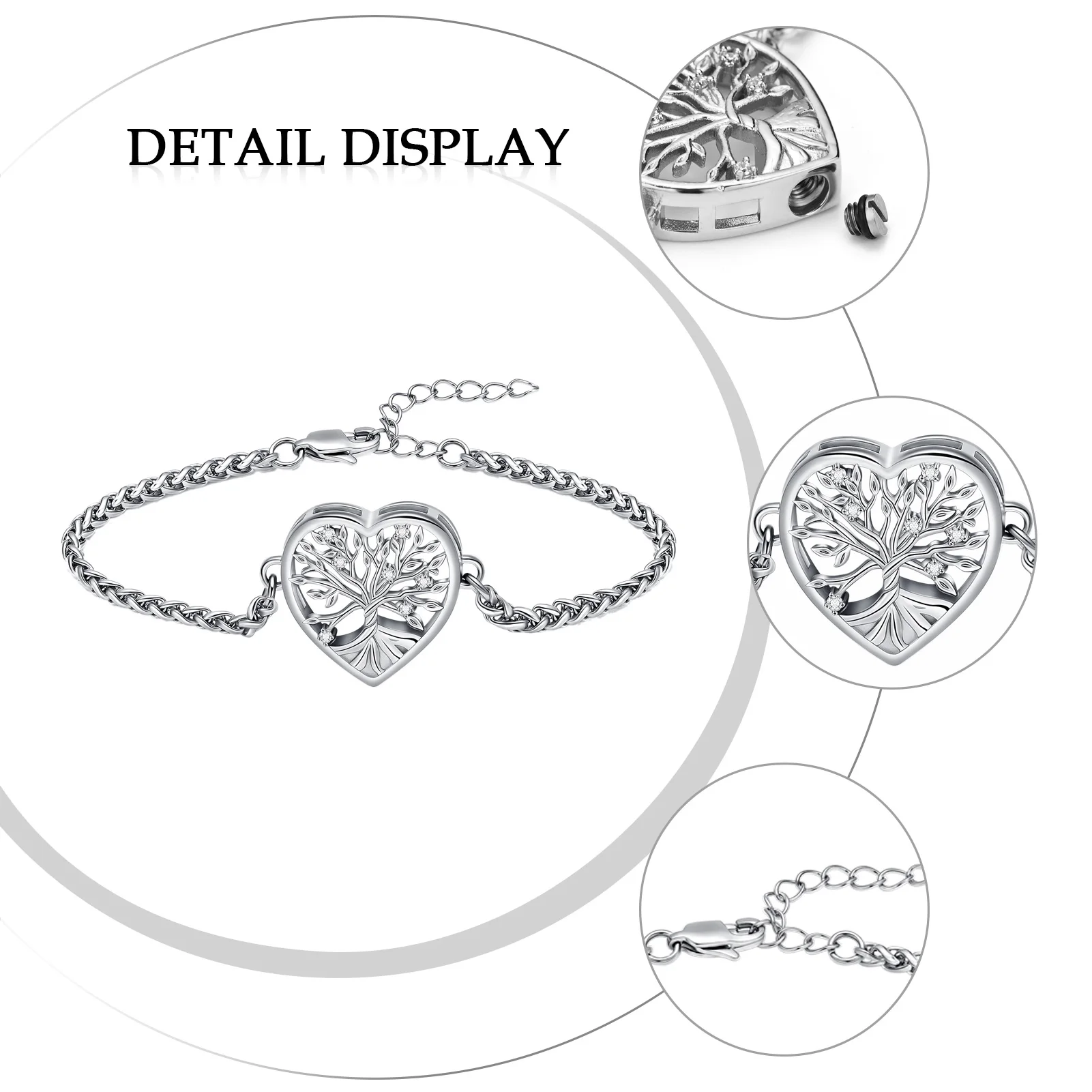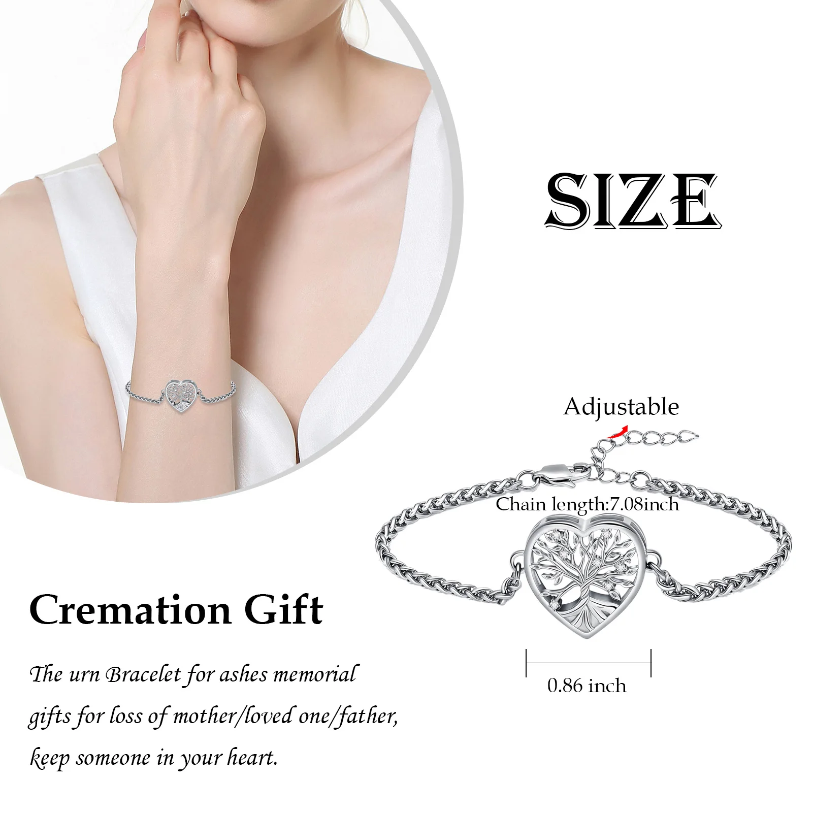 Цей елегантний жіночий кремаційний браслет слугує змістовним браслетом для похорону покійної людини. Виготовлений у формі серця та має мініатюрну урну для праху, він дозволяє вам залишатися поруч з коханою людиною.
