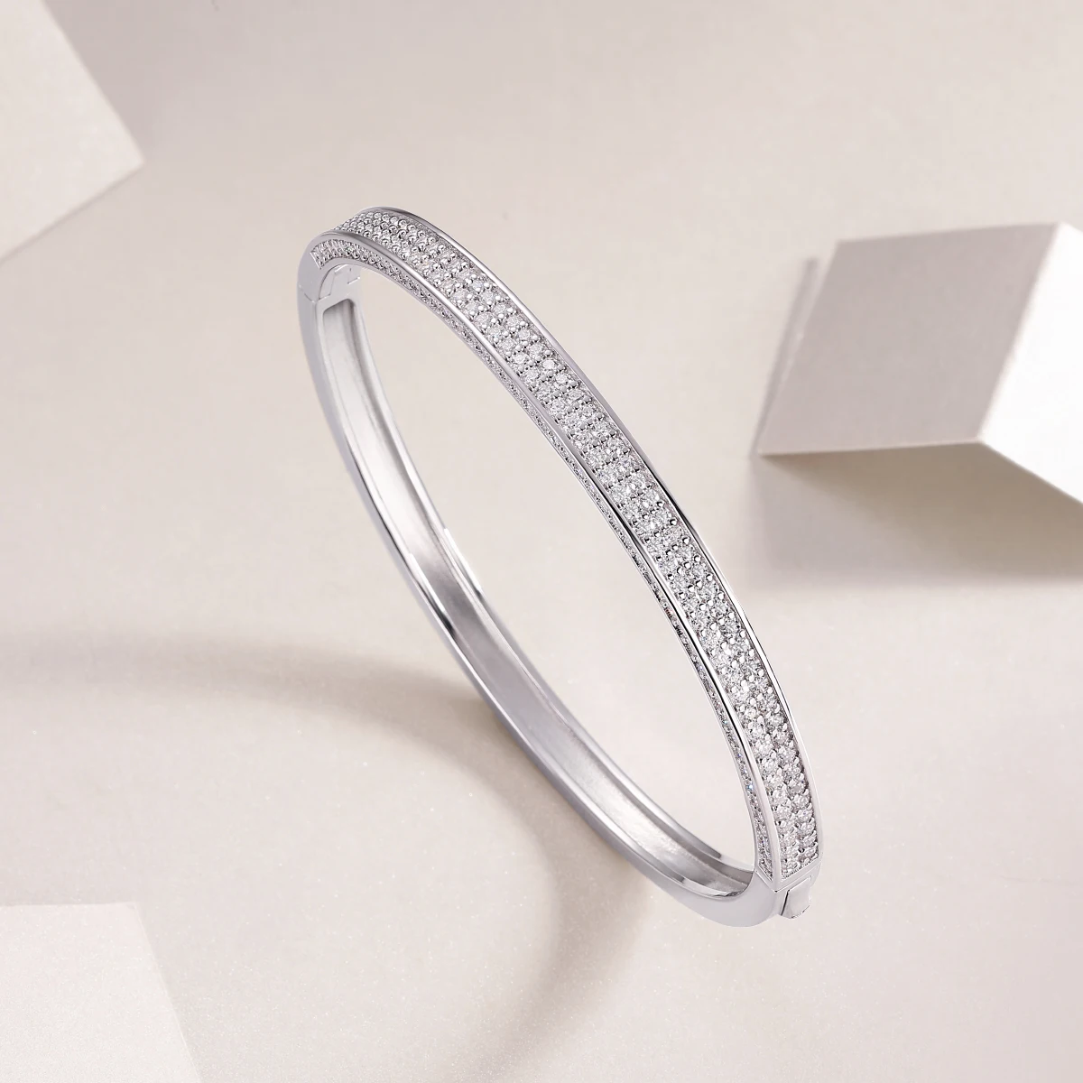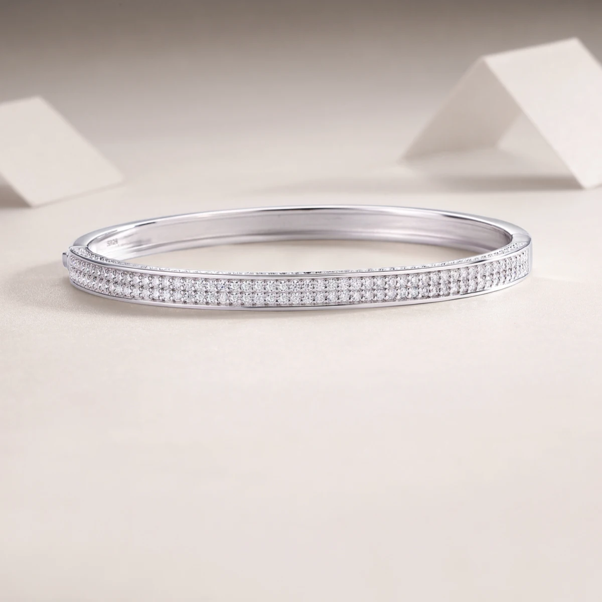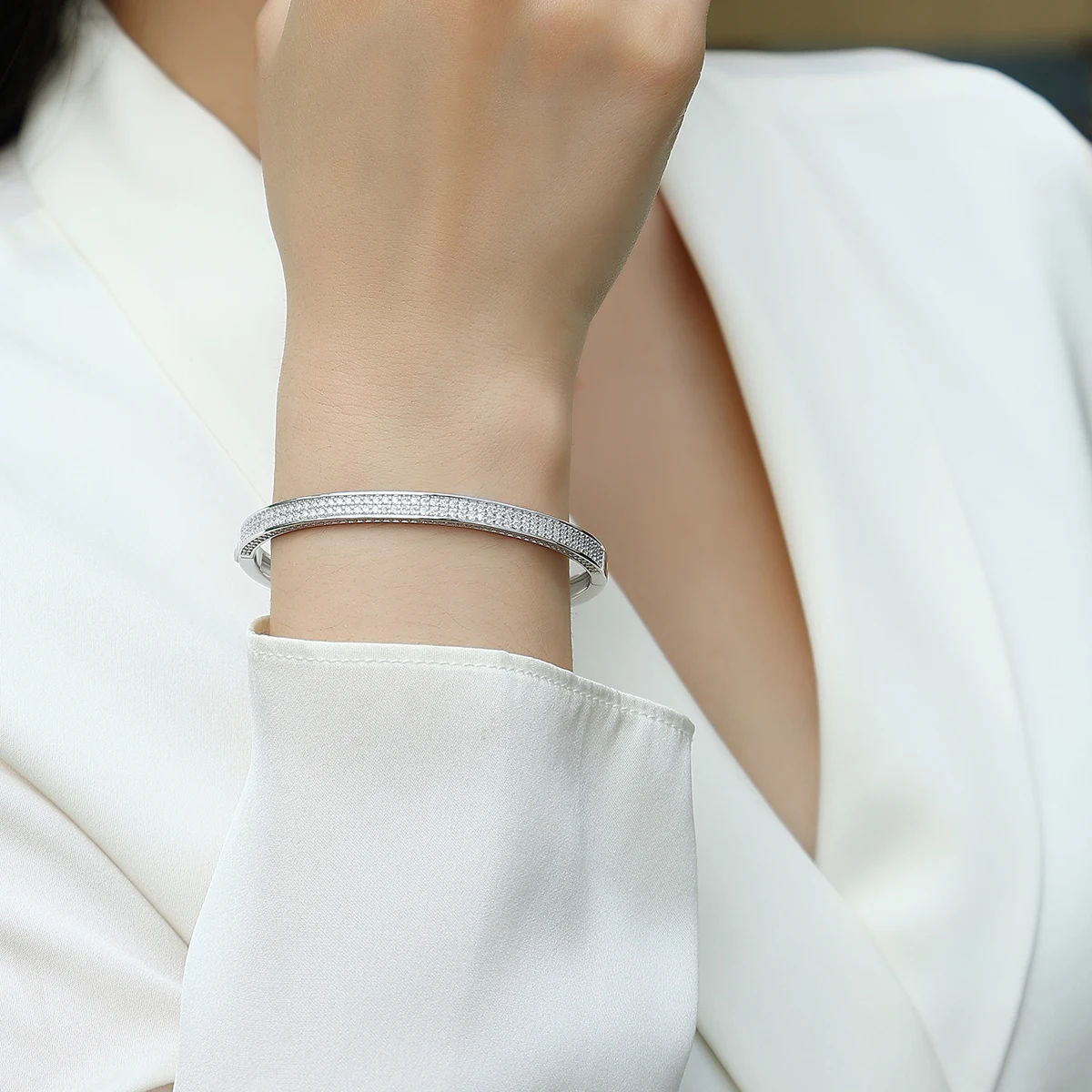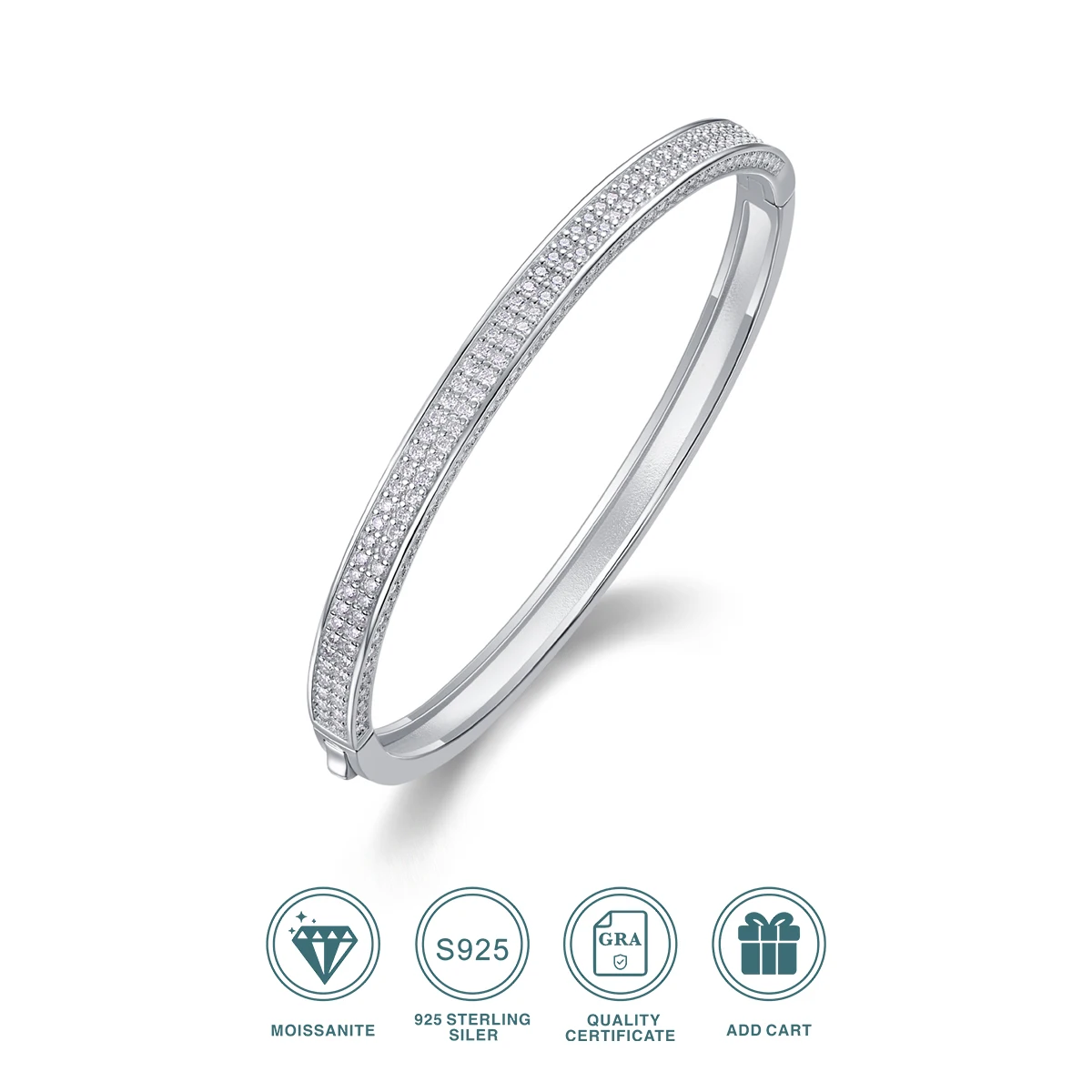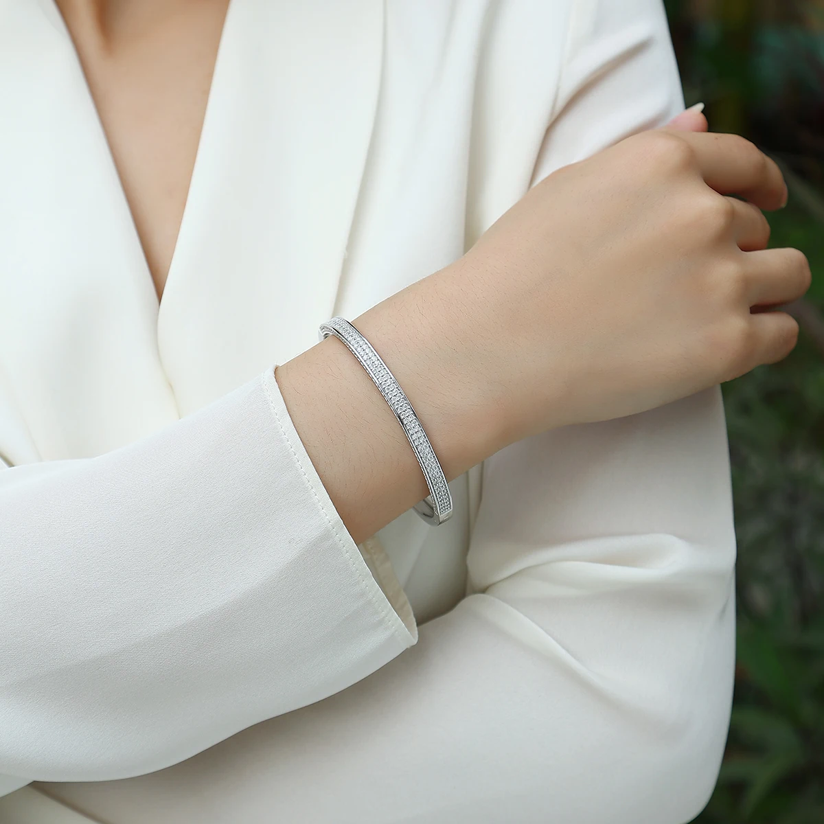 Цей елегантний жіночий браслет-браслет з муасаніту виготовлений зі срібла 925 проби та прикрашений блискучими діамантами, які чудово відбивають світло.